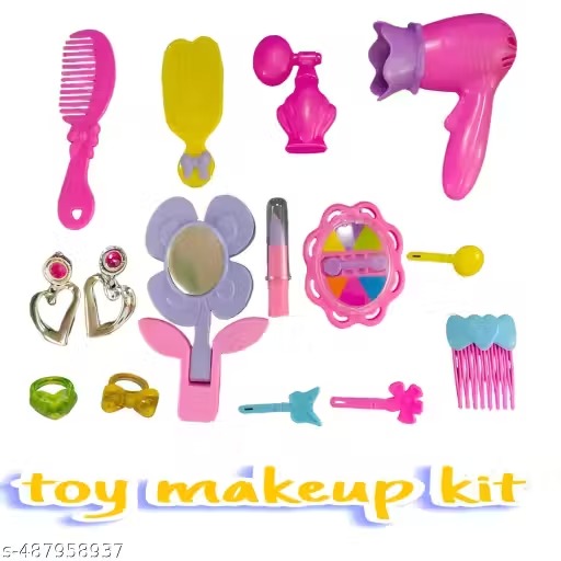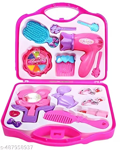 Get your small kid this cool beauty set. It’s A amazing combo of all the tit-bits for your little one. It includes hair dryer, comb, mirror, lipstick, ear rings, shadow colors and other accessories. Your baby girl going to love playing with this set. Made of high quality material.